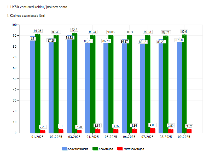 Soovitusindeksi väärtused 2025. aastal kuude lõikes skaalal -100% kuni +100%