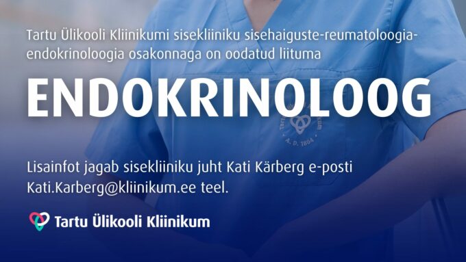 Tartu Ülikooli Kliinikum kuulutab välja konkursi sisekliiniku sisehaiguste-reumatoloogia-endokrinoloogia osakonna täis- või osatööajaga endokrinoloogi ametikohtade täitmiseks alates 1. märtsist 2026.