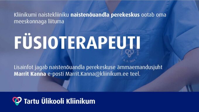 Tartu Ülikooli Kliinikumi naistekliiniku naistenõuandla perekeskus ootab oma meeskonnaga liituma täistööajaga füsioterapeuti. Tegemist on asendusametikohaga ning tööaeg on päevane.