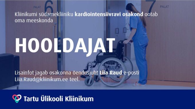 Tartu Ülikooli Kliinikumi südamekliiniku kardiointensiivravi osakond ootab oma meeskonnaga liituma osatööajaga (0,5 koormus) hooldajat, kelle peamisteks ülesanneteks on patsientide hooldamine ja abistamine (hügieenitoimingud, söötmine, aktiviseerimine jms), patsientide ettevalmistamine protseduurideks ja transport. Töötamine valvetes.