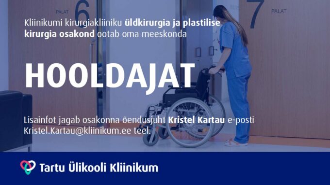 Tartu Ülikooli Kliinikumi kirurgiakliiniku üldkirurgia ja plastilise kirurgia osakond ootab oma meeskonnaga liituma täistööajaga (1,0 koormusega) hooldajat, kelle peamisteks tööülesanneteks on põetus- ja hooldustoimingute teostamine nii osakonna kui jälgimispalati patsientidele.