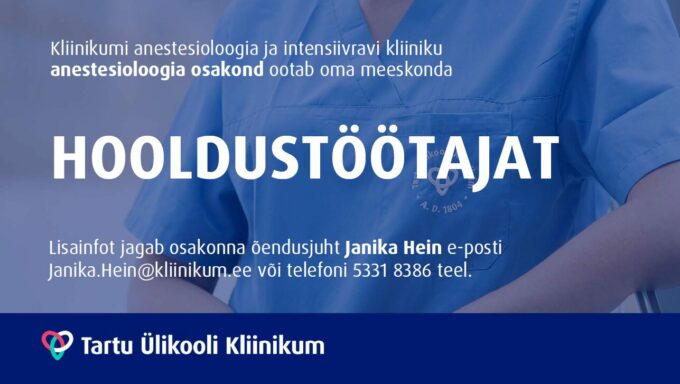 Tartu Ülikooli Kliinikumi anestesioloogia ja intensiivravi kliiniku anestesioloogia osakond ootab 2026. jaanuarist oma meeskonnaga liituma täistööajaga (1,0 koormusega) hooldustöötajat, kelle peamisteks tööülesanneteks on patsientide abistamine enne ja pärast operatsiooni.