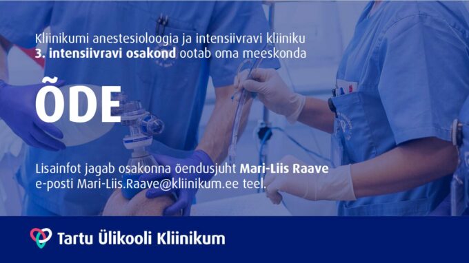 Tartu Ülikooli Kliinikumi anestesioloogia ja intensiivravi kliiniku 3. intensiivravi osakond ootab oma meeskonnaga liituma täis- või osalise tööajaga õde.