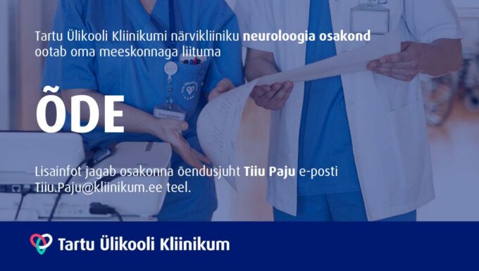 Tartu Ülikooli Kliinikumi närvikliiniku neuroloogia osakond ootab oma meeskonnaga liituma täistööajaga (1,0 koormusega) õde asendusametikohale. Tegemist on valvetööga.