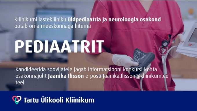 Tartu Ülikooli Kliinikum kuulutab välja konkursi lastekliiniku üldpediaatria ja neuroloogia osakonna osatööajaga (0,5 koormusega) pediaatri ametikoha täitmiseks alates 1. jaanuarist 2026.